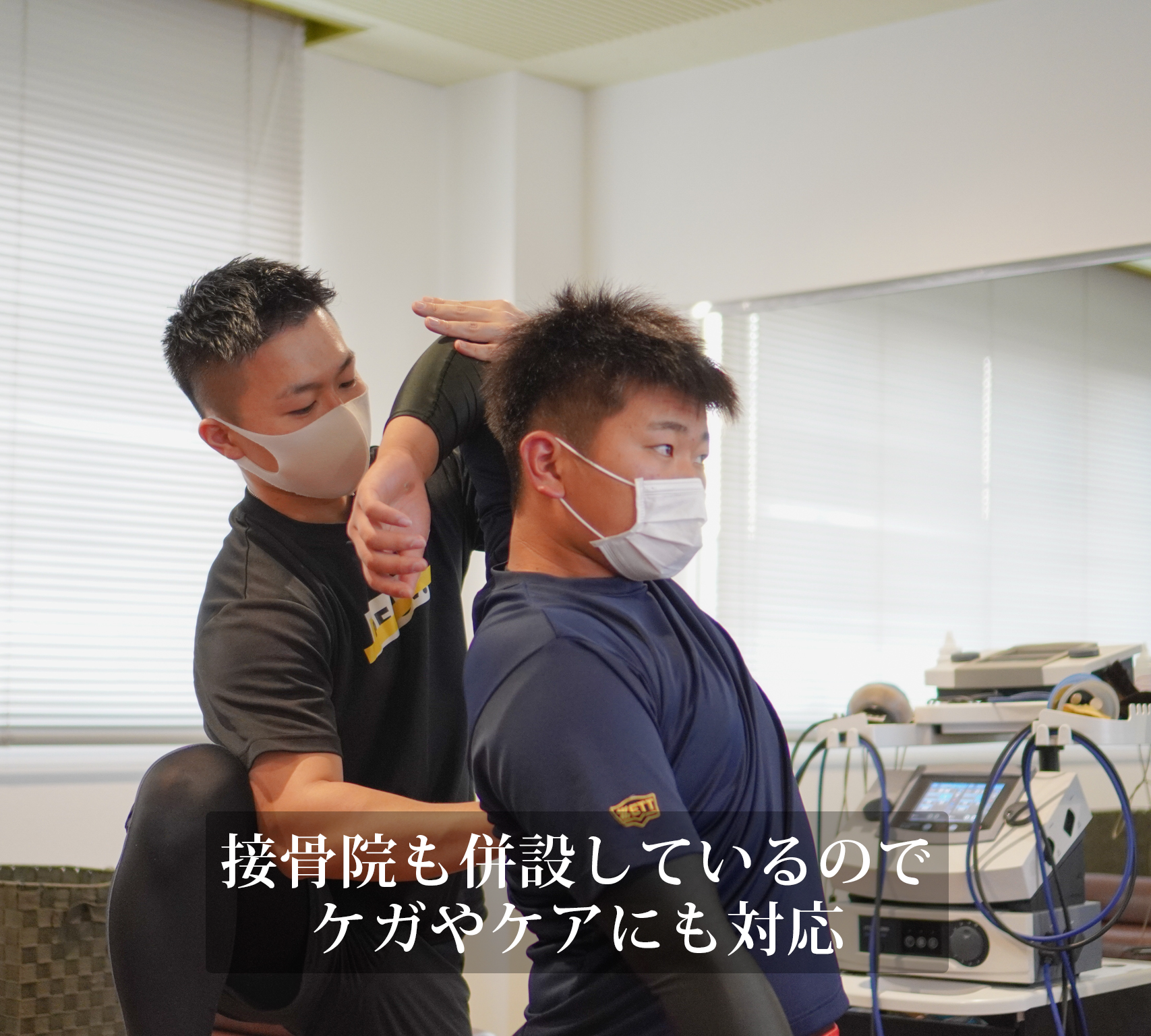 接骨院を併設していますのでトレーニングと治療やケアも同時で行えます。